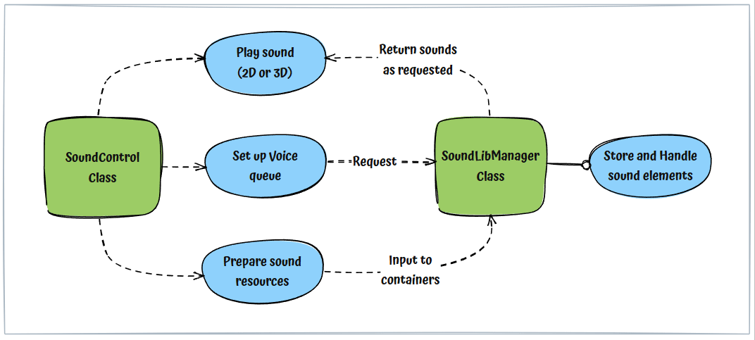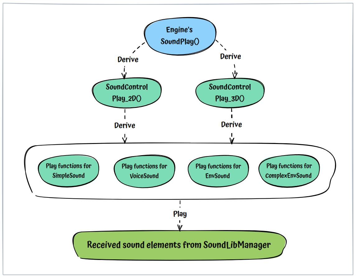 Play_2D()andPlay_3D(), to manage the engine's low-levelSoundPlay()functionality.Although the Sound Control system offers numerous specialized functions for playing different sound elements, all of them ultimately leverage these two functions as their backbone.