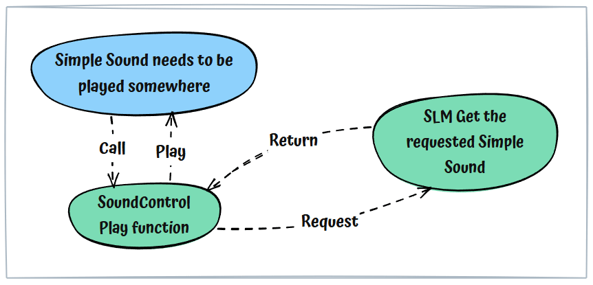 Recall: Depending on the requirements of the sound handler, the SoundControl system requests the SLM to retrieve a specific sound element (identified by its UID and including all associated parameters)