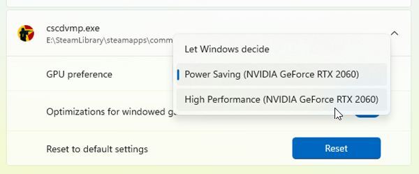 If it is not, go to Windows Graphic Settings then manually add the cscdvmp.exe file of the game by using Add desktop app button → Select correct dedicated card for the file → Restart the game.