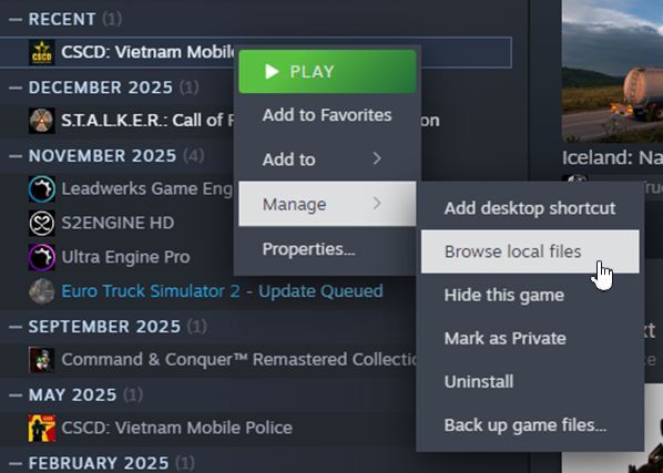 For Steam user, the cscdvmp.exe file is located in SteamLibrary\steamapps\common\CSCD Vietnam Mobile Police Demo\cscdvmp.exe
